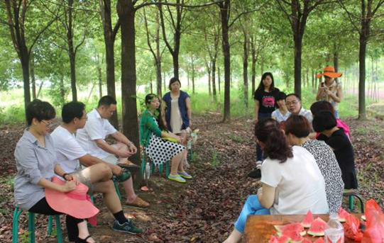 我們在小樹林里準備了桌椅,低碳又環(huán)保,總監(jiān)們相互交流積極愉快