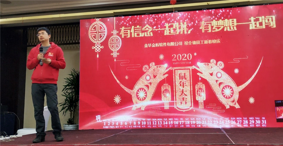 金豬辭歲,子鼠迎春,轉(zhuǎn)眼間,嶄新的一年已悄然向我們走來(lái),金華金辰軟件迎來(lái)了第17個(gè)年頭,伴隨著歡聲笑語(yǔ)2020年1月17日在偉達(dá)雷迪森酒店,迎新晚會(huì)正式拉開(kāi)序幕。